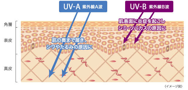 太陽から地表に届く紫外線は2種類、UV-AとUV-B