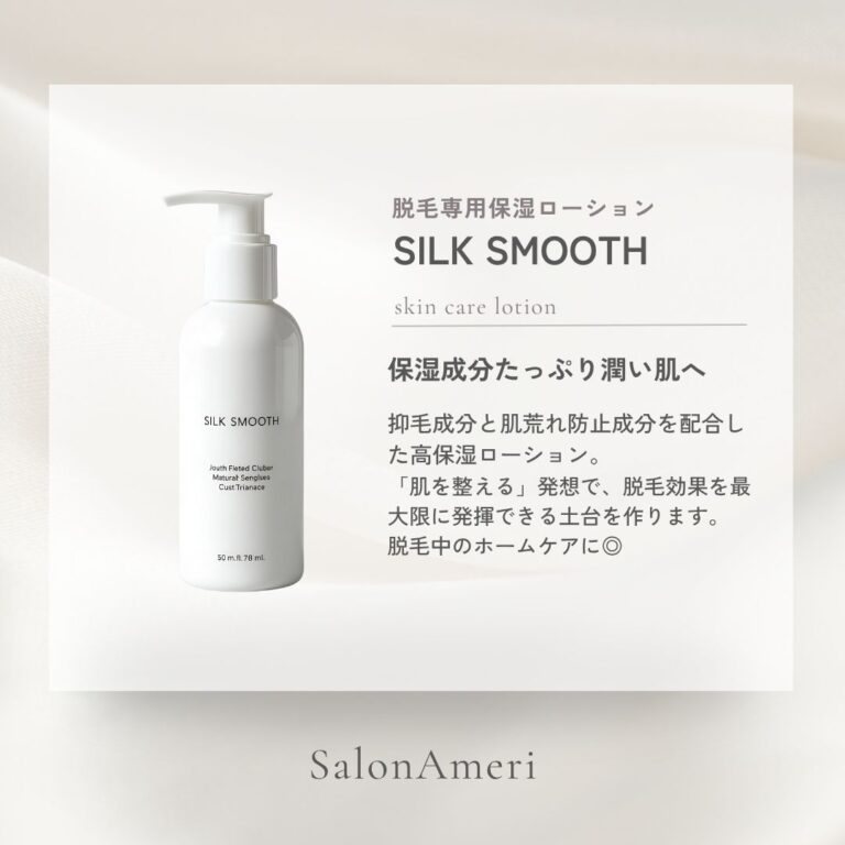 サロンアメリは、このたびオリジナル保湿ローション 「シルクスムース」 を開発・販売開始いたしました。 本商品は、サロンでの施術効果をより長くご実感いただけるよう、日常のホームケアに最適な…続きを見る